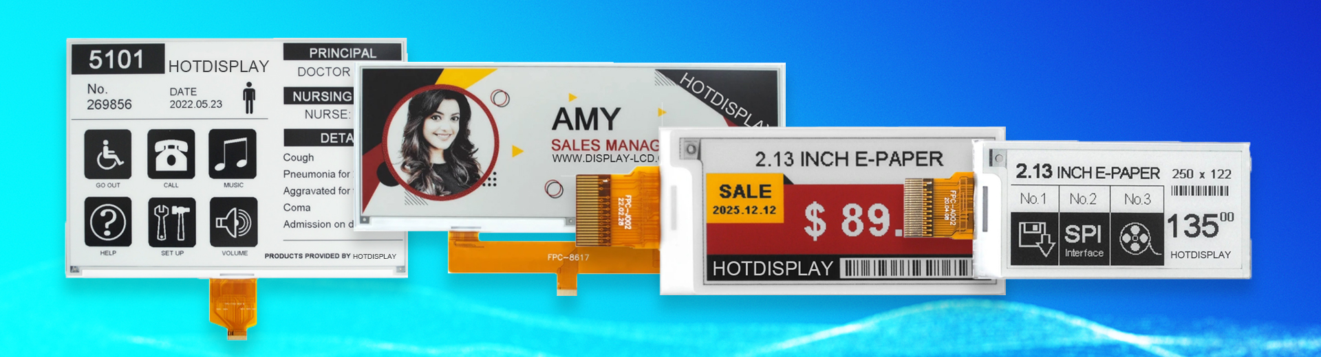 • Electronic paper display is lightweight, portable, and flexible: E Ink Displayboasts ultra-thin and ultra-light physical characteristics. Some products support flexible bending, allowing E-paper to adapt to complex installation scenarios.