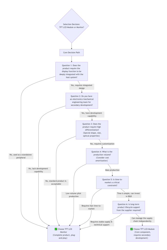 From the mind map comparing the needs of selecting an LCD module and an LCD monitor, we can obtain a quick decision-making checklist for your purchase guide: