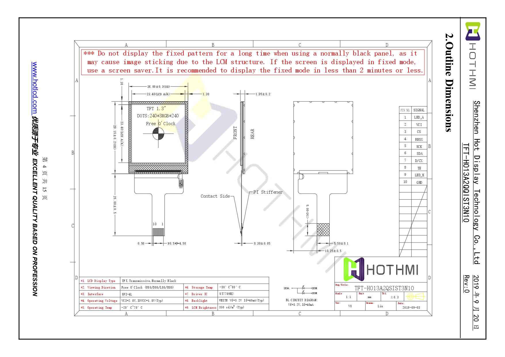 TFT-H013A2QSIST3N10 | 1.3 inch TFT LCD color display module | 240X240 SPI square Display