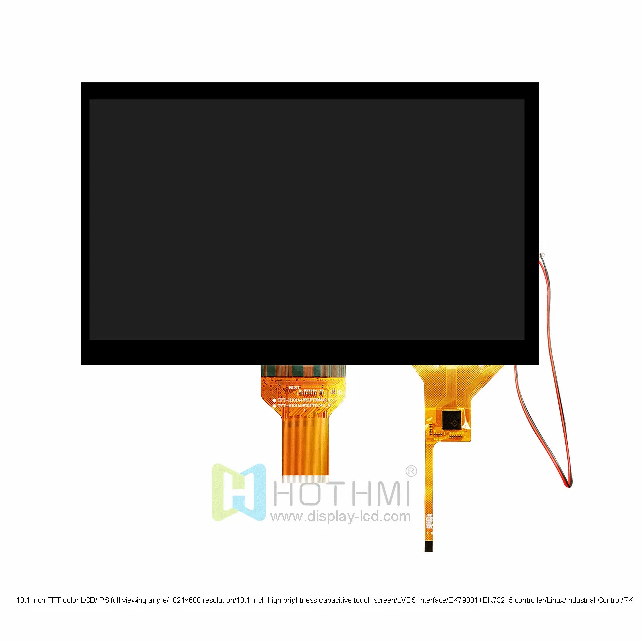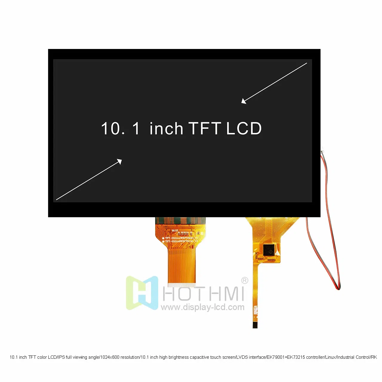 10.1-inch TFT Color LCD Display / IPS Full-Viewing Angle / 1024×600 Resolution / 10.1-inch High-Brightness Capacitive Touchscreen / LVDS Interface / EK79001+EK73215 Controller / Linux / Industrial Control / RK