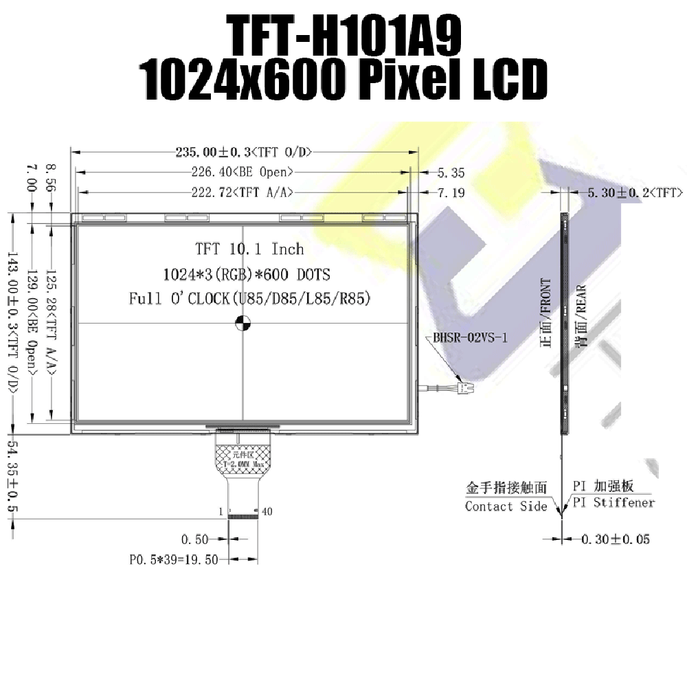 TFT-H101A9WSIFTKN40 | 10.1-inch TFT Color LCD Display | IPS Full Viewing Angle | 1024×600 Resolution | LVDS Interface
