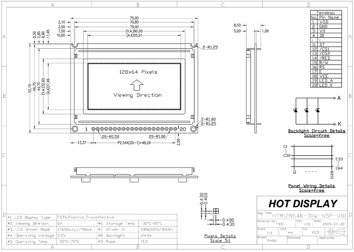 Specification of 128×64 Graphic LCD Display Module