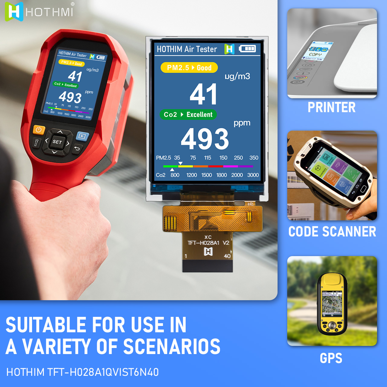 This 2.4-inch display is suitable for a variety of industries and applications, including industrial, commercial, control, PLC, outdoor handheld devices, aviation, consumer electronics, medical equipment, automotive dashboards, kiosks, field engineering, agriculture, and outdoor sports equipment. All our products are ROHS compliant.