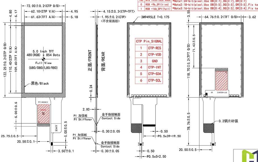 5.0 inch 480×854 sunlight readable TFT LCD display module | ST7701S controller | RGB interface TFT display | IPS full viewing angle LCD display module