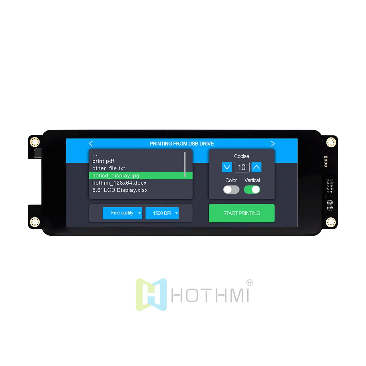 HOTDISPLAY UART monitor is an LCD screen that uses a UART serial port for communication. Users send instructions to the serial LCD screen through a single-chip microcomputer, and the serial screen automatically completes all operations for drawing on the LCD screen. Due to its simple operation, even people who do not understand any programming can easily develop the human-computer interaction interface they want.