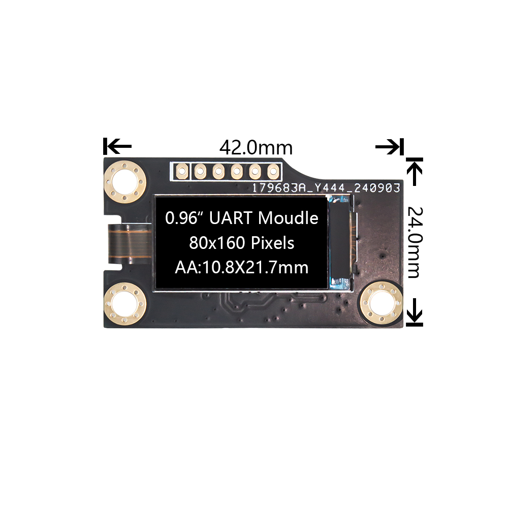 This 0.96-inch TFT LCD module is developed from the product TFT-H010W21AIST4N8. Users can also choose the display TFT-H010W21AIST4N8 with 10 metal pins to complete the combination with the driver board. The driver board is equipped with the easy-to-operate EZUI system. For developers, it is simple and easy to operate. The same series of products can also provide touch function. The product complies with ROHS/FCC standards, and quality control strictly follows ISO9001:2015.